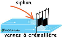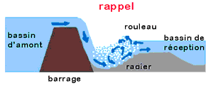 1 Lorsque le barrage est en pente (déversoir), l’eau s’écoule normalement en bas de la chute et il n’y a pas de risque quand le débit est faible.