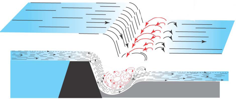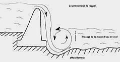l’aval qu’en partie basse. Un courant de surface ramène inexorablement le nageur de surface vers l’amont, c’est le rappel et le risque de noyade est important.